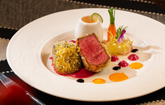 當倔強的貴州牛肉,遇上貴陽冠軍咖啡、榕江百香果與銅仁抹茶,能碰撞出怎樣的火花?答案藏在貴旅集團廚師團隊長達一個月的技術攻關與風味探索里。12月25日,走進貴州飯店貴賓樓NO.66扒房,20多款“腦洞大開”的牛排新